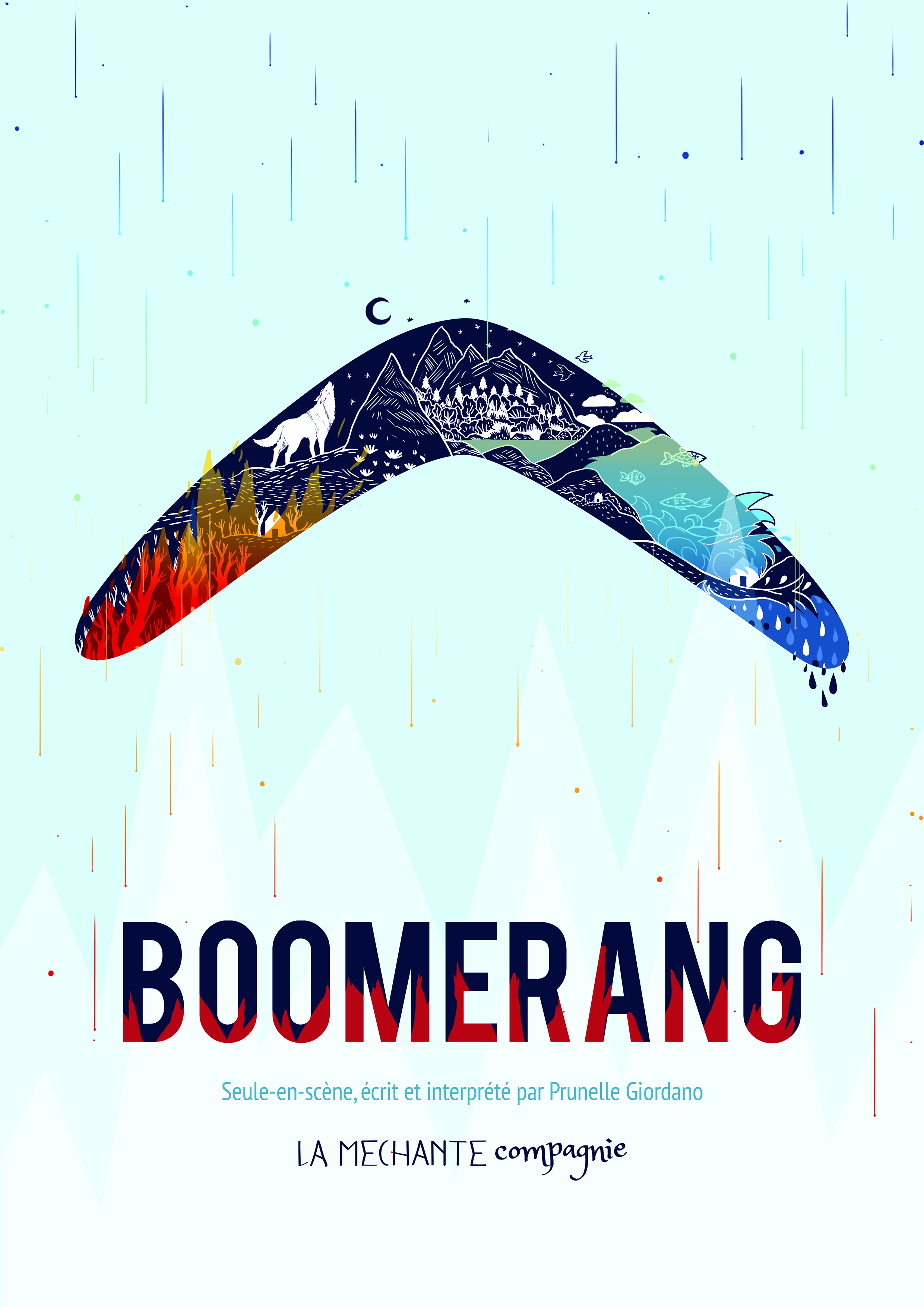 BOOMERANG, c’est un conte initiatique qui revisite une structure bien connue de nos contes traditionnels. Avec humour et tendresse, la comédienne interprète tous les personnages. Un spectacle d’une grande sensibilité, qui questionne les trajectoires individuelles dans un monde en mutation où la crise économique et la crise climatique sont devenues notre quotidien. Ici, des hommes et des femmes traversent des catastrophes naturelles et familiales qui les obligent à réajuster leur projet de vie afin de trouver un sens au chaos qu’ils traversent.